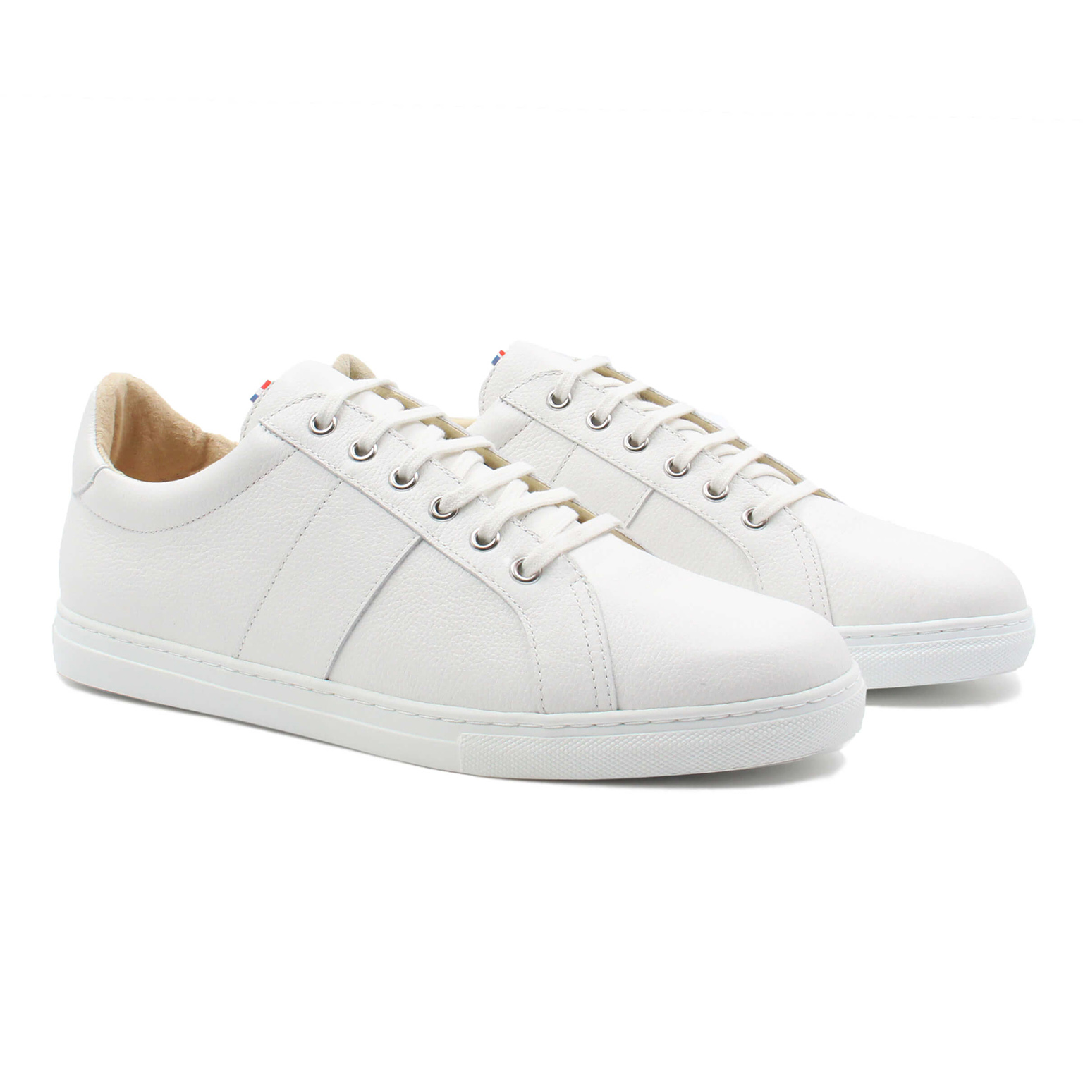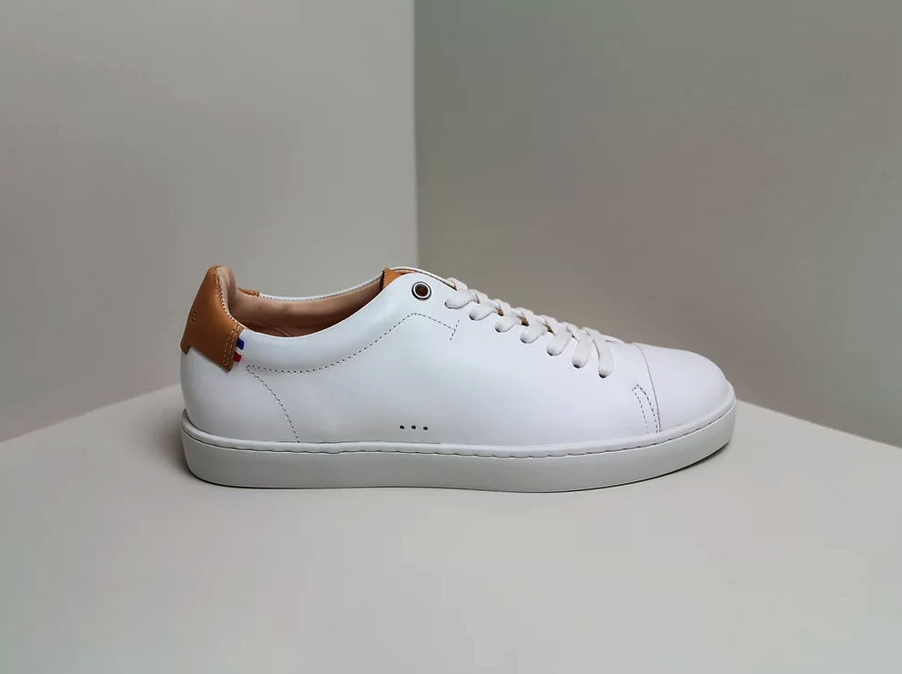 1- Jules & Jenn : ces baskets sont 100% made in France, dans un cuir grainé Italien. Certification Origine France Garantie. Semelle intérieure et doublure en cuir lisse sans chrome. Prix : 150€