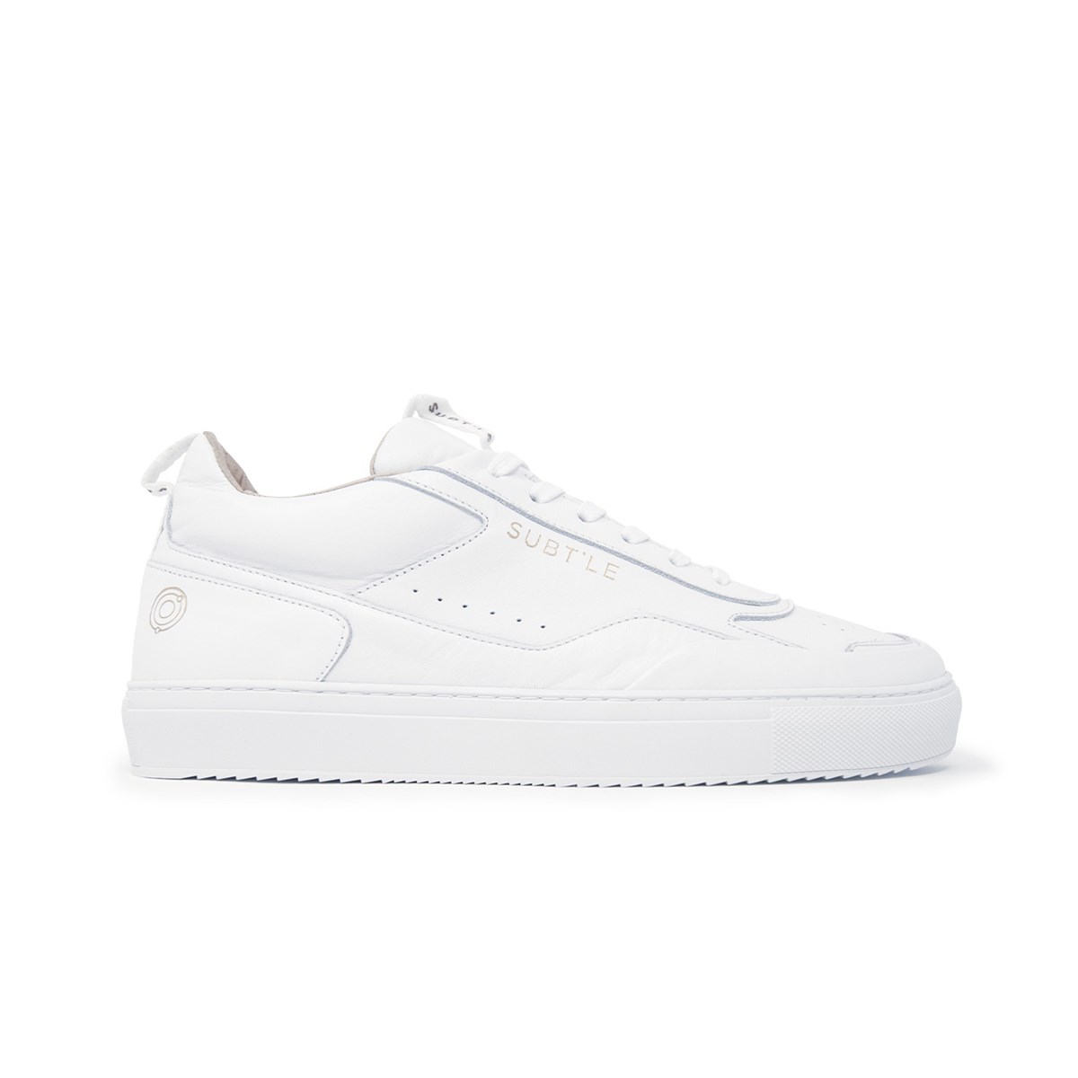 Subtle, modèle Sigma Full White : ces baskets sont en cuir et réalisées au Portugal. La marque se fournit, pour chaque composante, dans la même région afin de privilégier les circuits courts. A chaque fois que possible, le cuir est tanné végétalement. Prix : 140€.