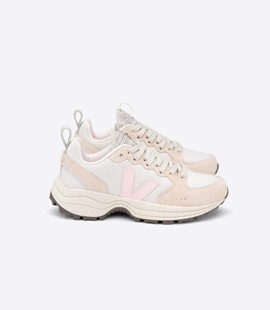 Veja, modèle Venturi hexamesh gravel petale : les baskets sont fabriquées au Brésil dans la démarche éthique et éco-responsable de la marque. Elles sont composées de jute, cuir, polyester recyclé, coton biologique, caoutchouc naturel. Prix : 140€
