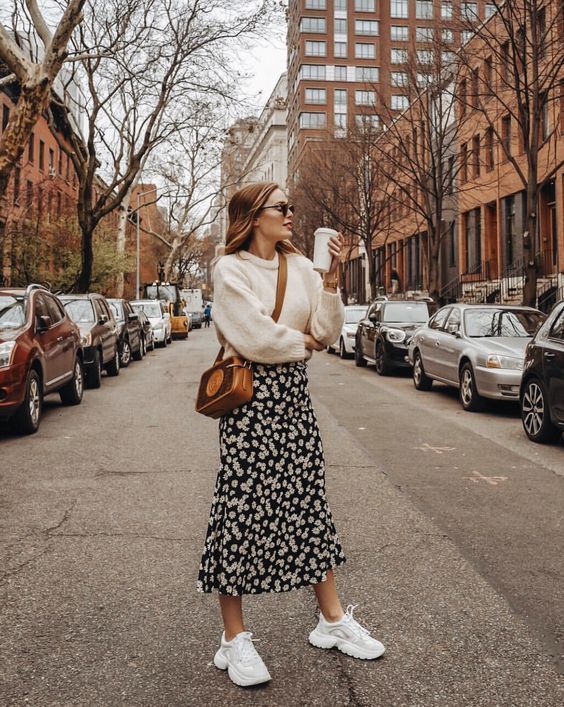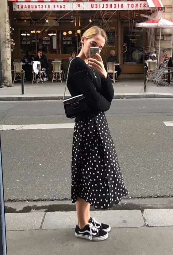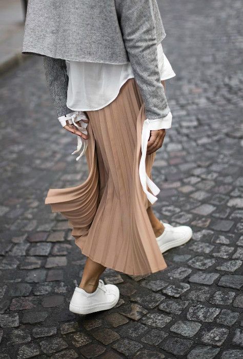 bonjour j aime beaucoup le coté jupe ou robe avec des baskets … mais je ne sais pas quelles baskets marier avec une jupe en hiver et des collants noirs… pouvez vous me conseiller..