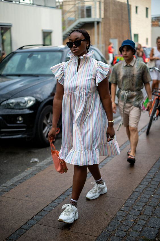 Par exemple, pourquoi est-il tout à fait possible d’être élégante en baskets avec les jupes et les robes ?
