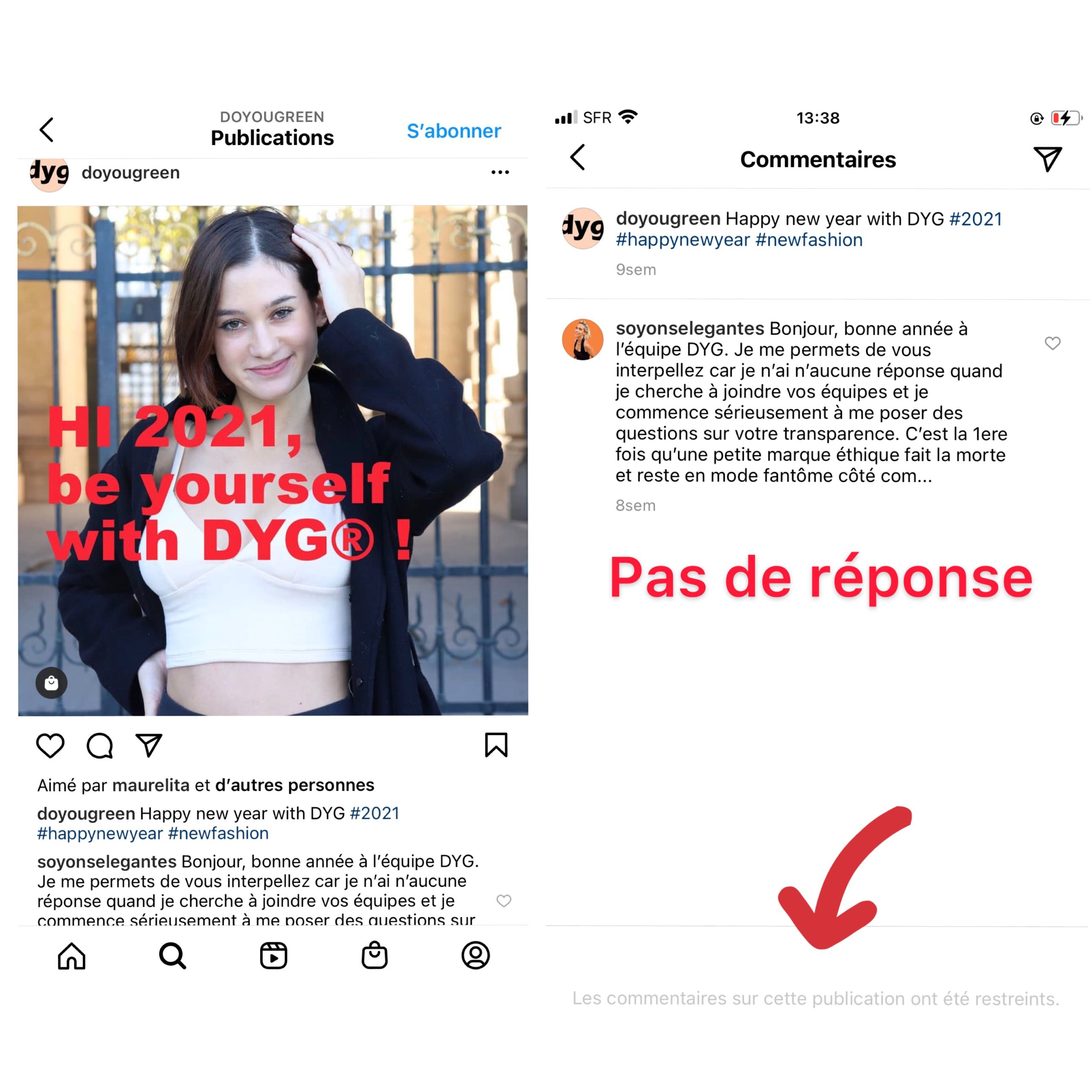 Au vu de tous ces éléments, je ne peux que vous déconseiller de commander auprès de cette marque. Je ne peux que vous alerter, vous dire de vous en méfier et de ne pas faire confiance pour le moment.