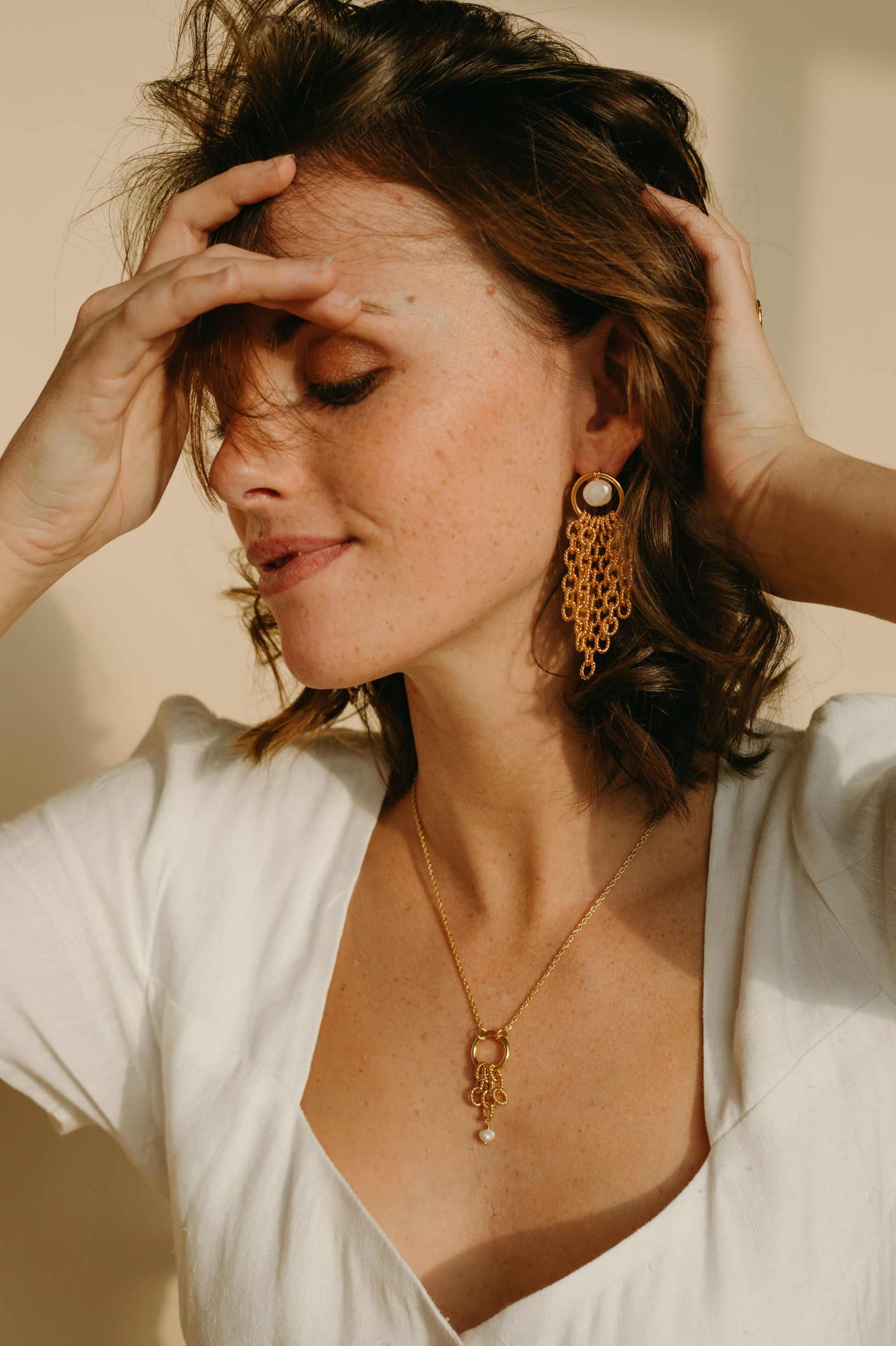 Parmi mes favoris, il y a aussi les boucles Loren bien sûr ! C’est un modèle que nous avons co-créé ensemble en 2020 (disponible sur demande). Inspirée par des photos d’égéries des années 90, j’avais l’idée de retranscrire des boucles conciliant élégance et caractère fort. On assume son style et sa personnalité quand on porte ces boucles ! Et surtout, elles suffisent à elles seules à rendre n’importe quelle tenue basique ultra chic. (attention : à éviter pour les oreilles fragiles car les perles pèsent un petit peu).