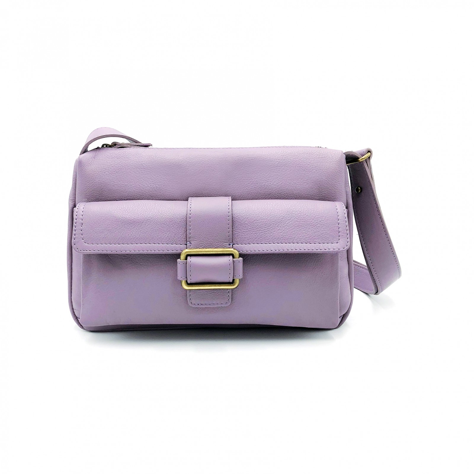 Versace combine couleurs tendres et détails de couleur pop comme ce sac lilas avec chaîne jaune contrastante.