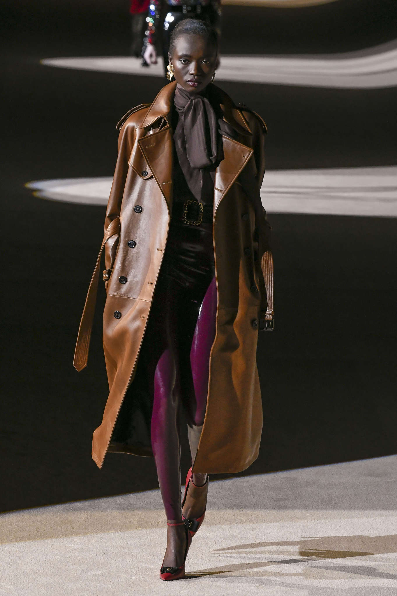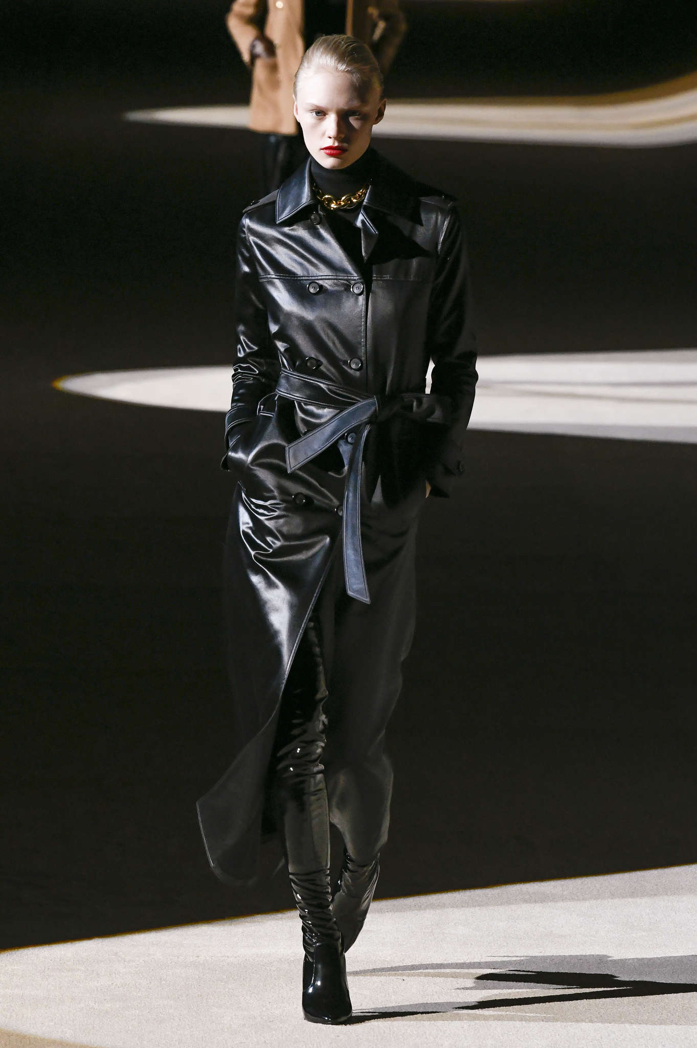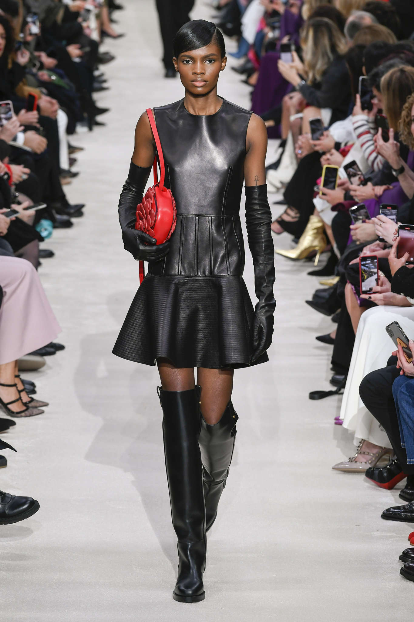 Le cuir s’impose cette saison. Comme on l’a vu, sur des manteaux mais aussi en robes de différentes longueurs. Les gants en cuir s’allongent également jusqu’au coude pour un effet rétro-chic.