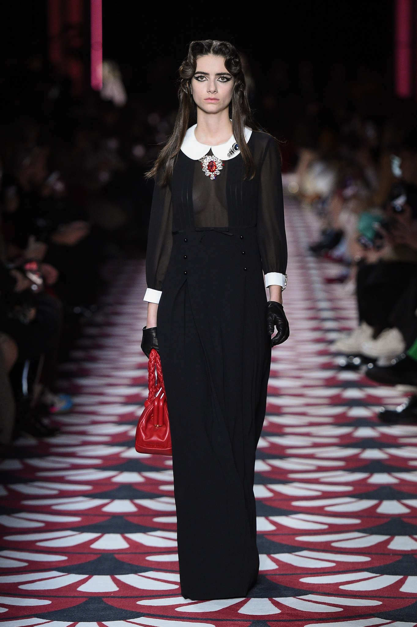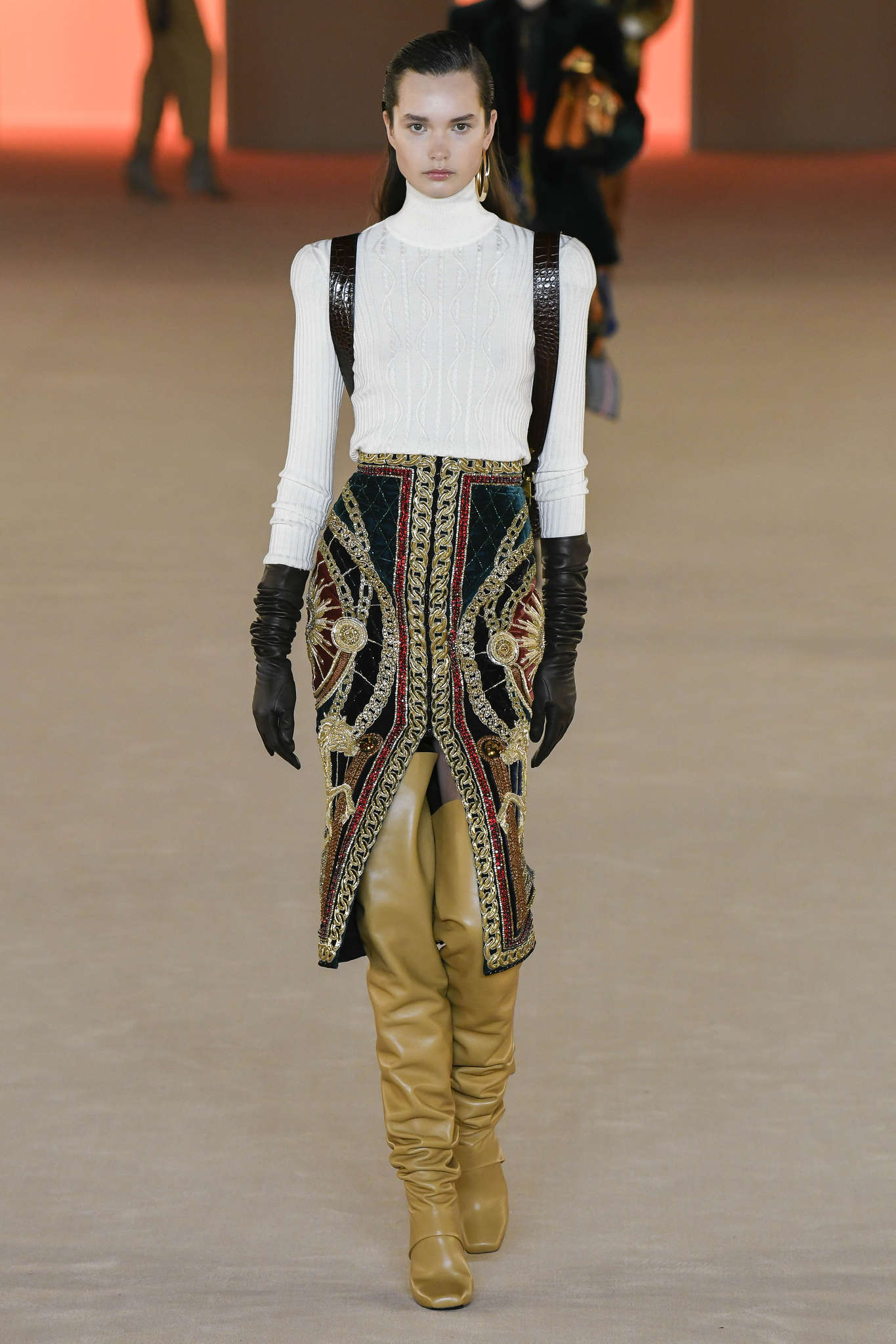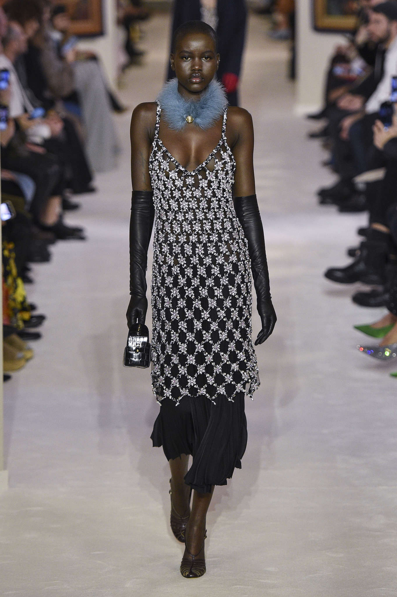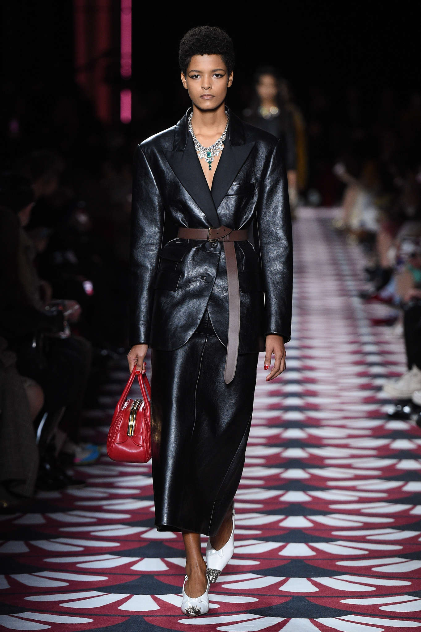 Le cuir s’impose cette saison. Comme on l’a vu, sur des manteaux mais aussi en robes de différentes longueurs. Les gants en cuir s’allongent également jusqu’au coude pour un effet rétro-chic.