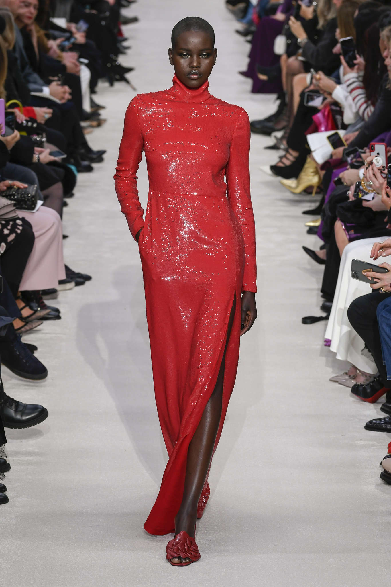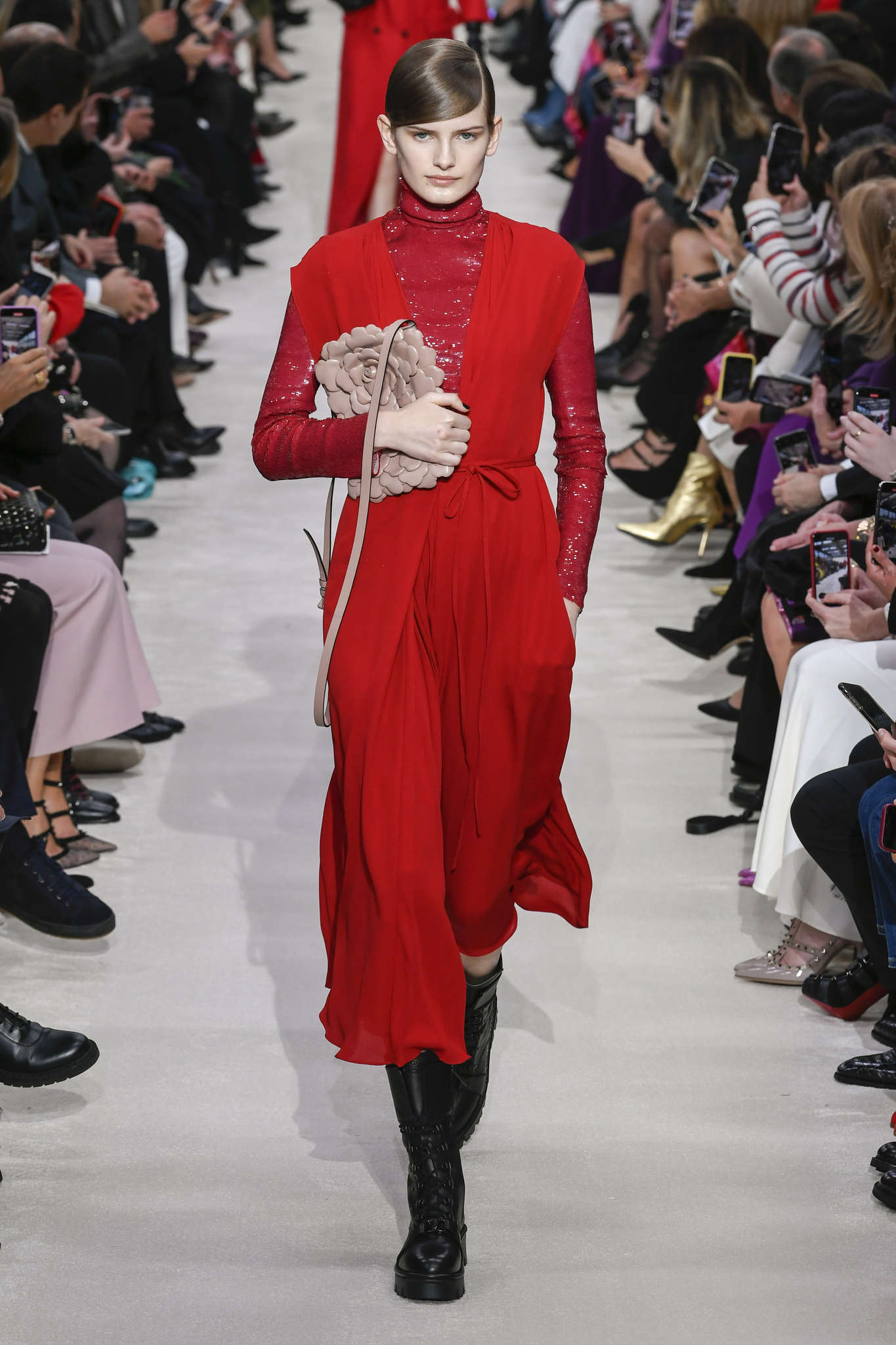 On relève aussi un peu de flamboyance notamment pour sortir le soir, avec un rouge « pomme d’amour », magnifiquement présenté chez Valentino notamment et l’argent métallisé.