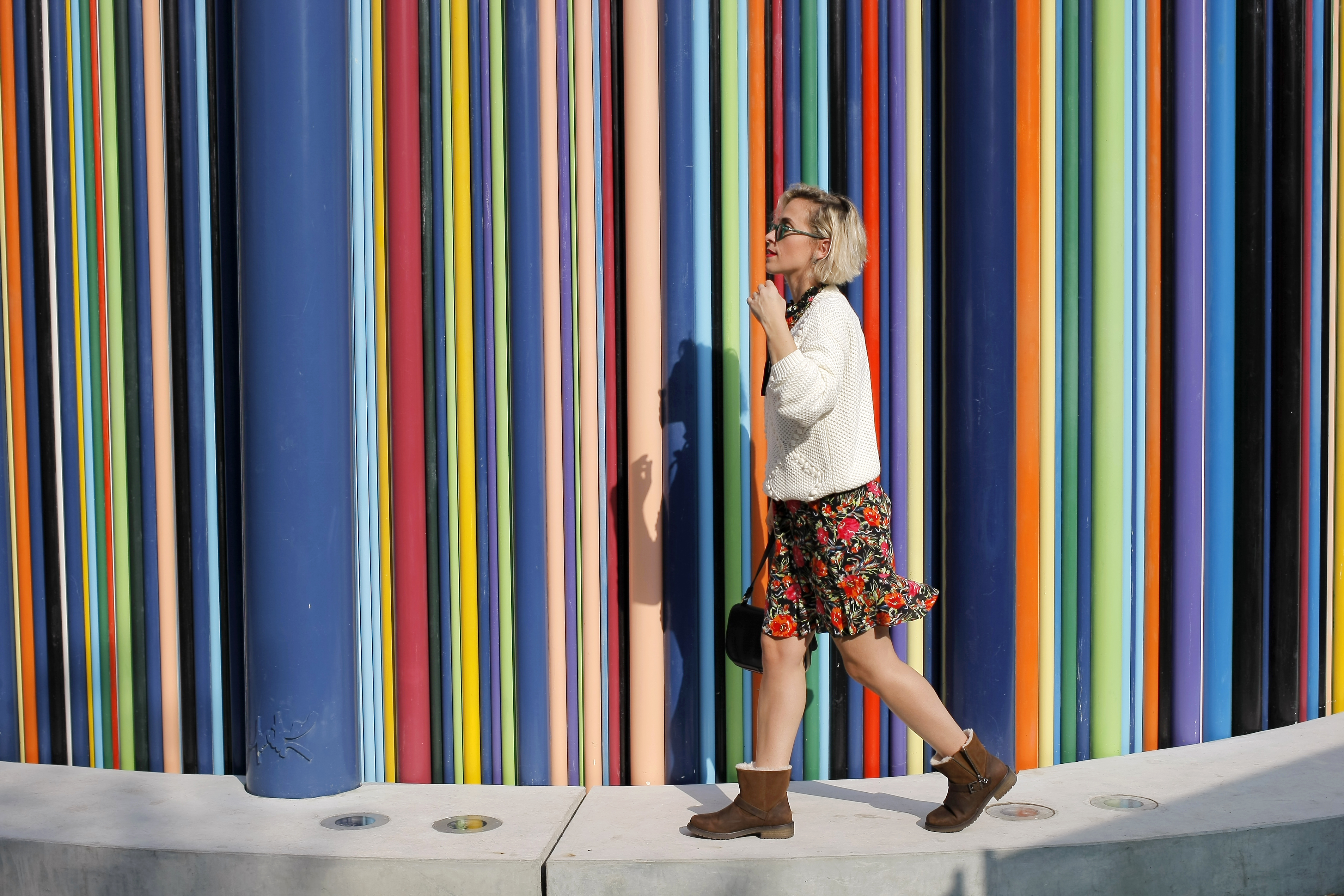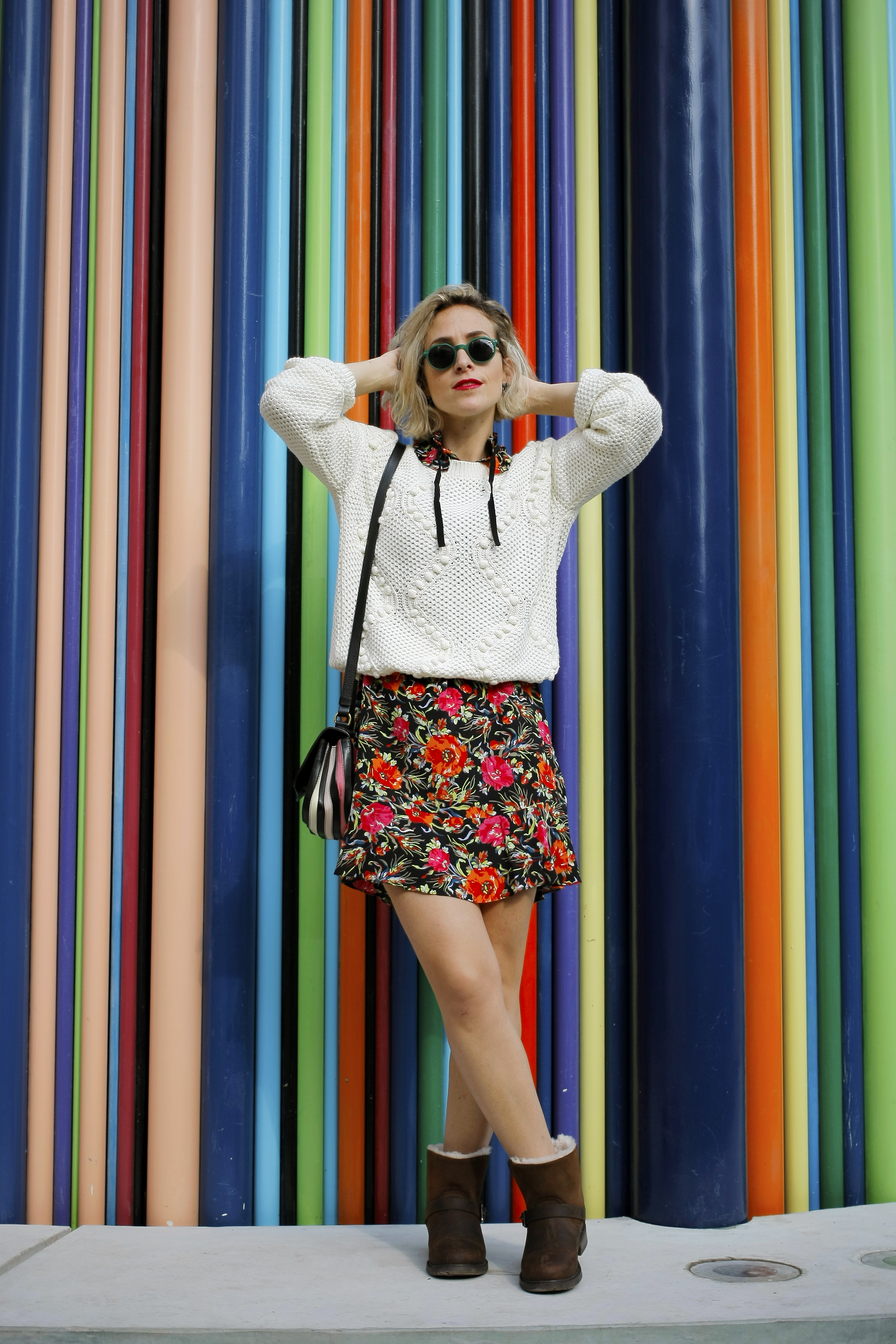 Ce combo fonctionne à tous les coups ! La robe a fleurs a deux alliés de choc quand il commence à faire frais : la maille et les chaussures un peu massive…